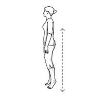 Stellen Sie sich aufrecht hin, die Beine sind geschlossen.