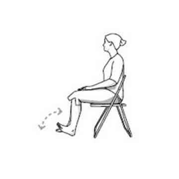 Setzen Sie sich auf einen Stuhl und stellen Sie die Füsse auf den Fersen auf.