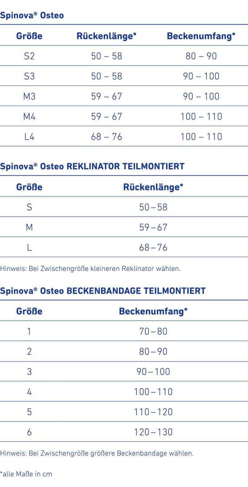 Zweckbestimmung: Spinova Osteo ist ein Medizinprodukt. Sie ist eine Orthese zur Stabilisierung und aktiven Aufrichtung der Wirbelsäule mit freiem Brust- und Bauchbereich.