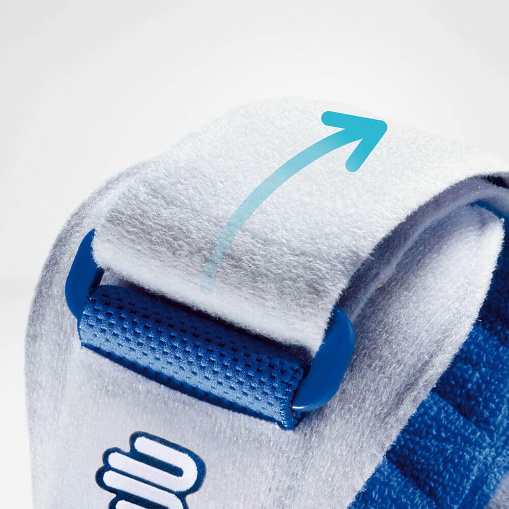 Beim Tennisellenbogen treten die Schmerzen an der Außenseite des Ellenbogens auf, beim Golferellenbogen ist die Innenseite in Mitleidenschaft gezogen. Je nachdem, wie du die Spange anlegst, wirkt die Pelotte an dem entsprechenden Sehnenansatz und bietet Linderung. Dabei ist die EpiPoint universell für beide Arme einsetzbar. Mit ihrem verstellbaren Klettband lässt sich außerdem einstellen, wie straff die Spange sitzt. Ein roter Signalbereich wird sichtbar, sobald du das Klettband der Orthese zu eng anlegst. Darüber hinaus ist die EpiPoint extra flach gearbeitet, damit du die Ellenbogenspange auch unauffällig unter der Kleidung tragen kannst. Das hautfreundliche und atmungsaktive Material macht das Tragen angenehm und die frotteebeschichtete Innenseite beugt lästigem Schwitzen vor.