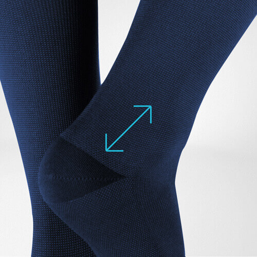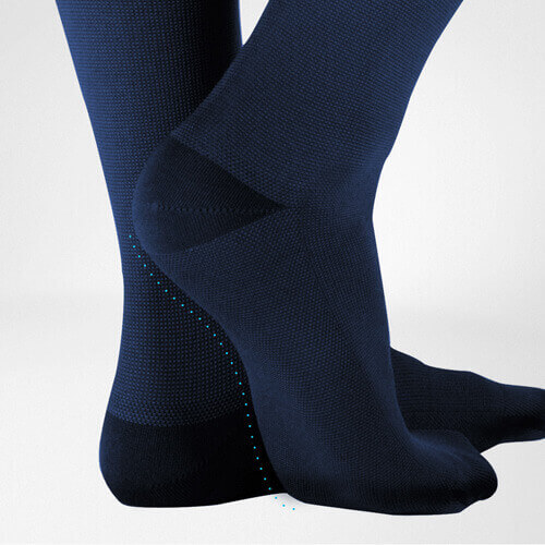Innenseitig mit Baumwolle verarbeitet, ist der VenoTrain business besonders weich und selbst für sensible Haut geeignet. Auch die hohe Atmungsaktivität macht das Tragen sehr angenehm. Gleichzeitig macht die verstärkte Fußsohle den Strumpf robust: Die spezielle Faserkonstruktion bewirkt einen sogenannten „Antipilling-Effekt“ – das Gestrick bleibt also trotz Belastung fusselarm.