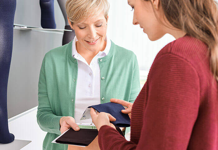 Eine hohe Passgenauigkeit ist für die optimale Wirksamkeit unserer Produkte unerlässlich. Damit diese auch bei einer Vielzahl von Messpunkten sichergestellt ist, ist es unbedingt zu empfehlen, das Maßnehmen von den Experten im Sanitätshaus übernehmen zu lassen.