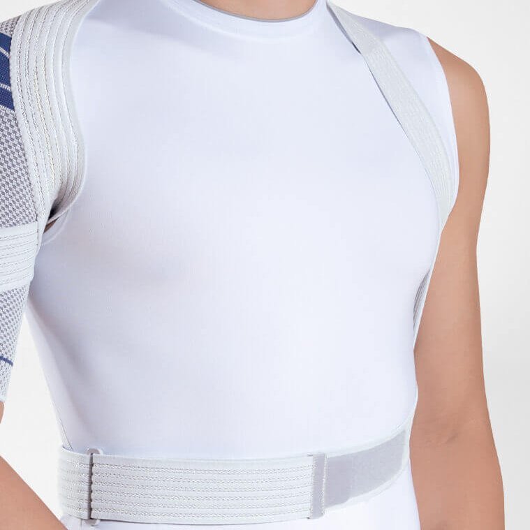 OmoTrain vise à centrer la tête de l'humérus dans la cavité articulaire. Le bandage est maintenu en place par une sangle qui entoure le torse sous le thorax et laisse la poitrine complètement libre. Ainsi, OmoTrain est agréable à porter et n'entrave pas la respiration. Le bandage est facile à enfiler et à retirer du fait de sa grande élasticité sans gêner les mouvements. Tu peux ainsi progressivement réentraîner tes muscles, favorisant ainsi ta guérison et ta mobilité.