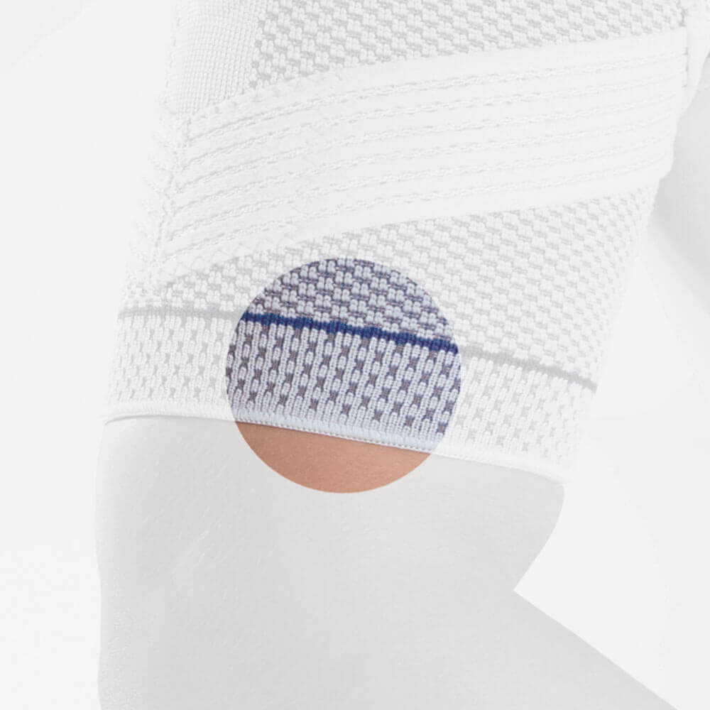 - Centre l'articulation grâce au tricot compressif et à la traction du système de sangles
