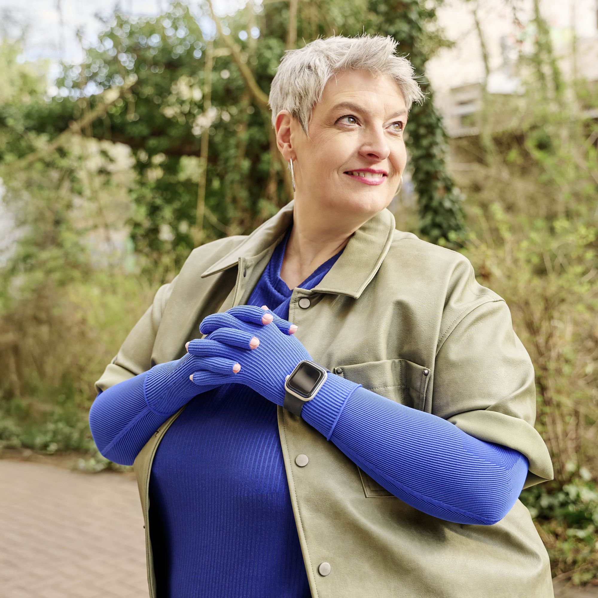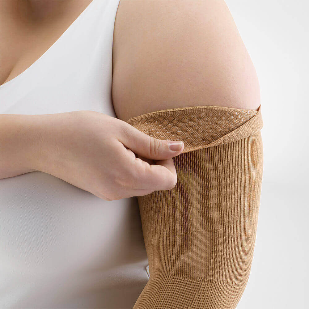 Les lymphœdèmes au bras sont souvent la séquelle d'une longue lutte contre un cancer du sein. Le VenoTrain curaflow t'aide contre les lymphœdèmes au bras, mais aussi contre le lipœdème ou le lipolymphœdème. La compression soulage les tensions, favorise l'élimination du liquide dans les tissus et contrecarre de nouveaux dépôts et durcissements.