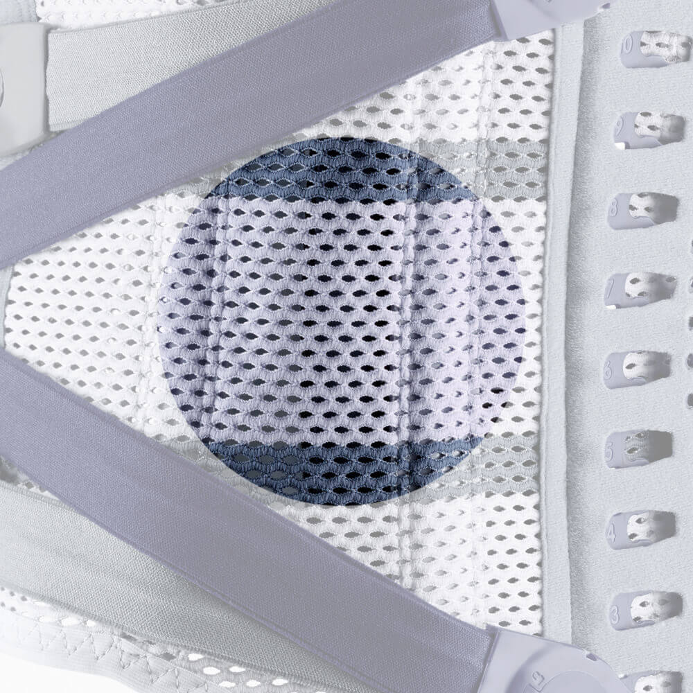 Le matériau en matrices de fibres, élastique et aéré, qui entoure le tronc s'adapte exactement à ton anatomie et se porte confortablement. Grâce au système breveté de sangles de traction Spinova, réglable en hauteur, la force de traction et sa direction d'action exacte peuvent être réglées. Cela signifie que la force de redressement est la même lors de chaque mise en place. Au fur et à mesure de la guérison, la pelote dorsale tout comme la pelote ventrale, qui permet d'en renforcer l'effet, peuvent être retirées.