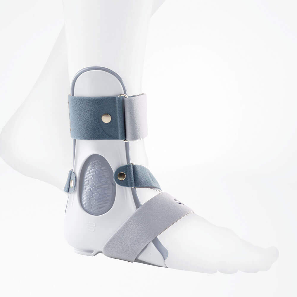 En cas de blessures plus graves ou après une opération, elle aide au processus de guérison en immobilisant partiellement la cheville dans un premier temps. CaligaLoc stabilise l'articulation tibio-tarsienne et astragalo-calcanéenne avec une coque extérieure en plastique en forme de L et une semelle allongée. L'extérieur de la semelle est légèrement surélevé par une cale au talon. L'orthèse fait ainsi pencher le pied vers l'intérieur, décharge les ligaments externes, ce qui prévient également le développement d'une instabilité chronique. Cette position du pied protège aussi de toute nouvelle torsion.
