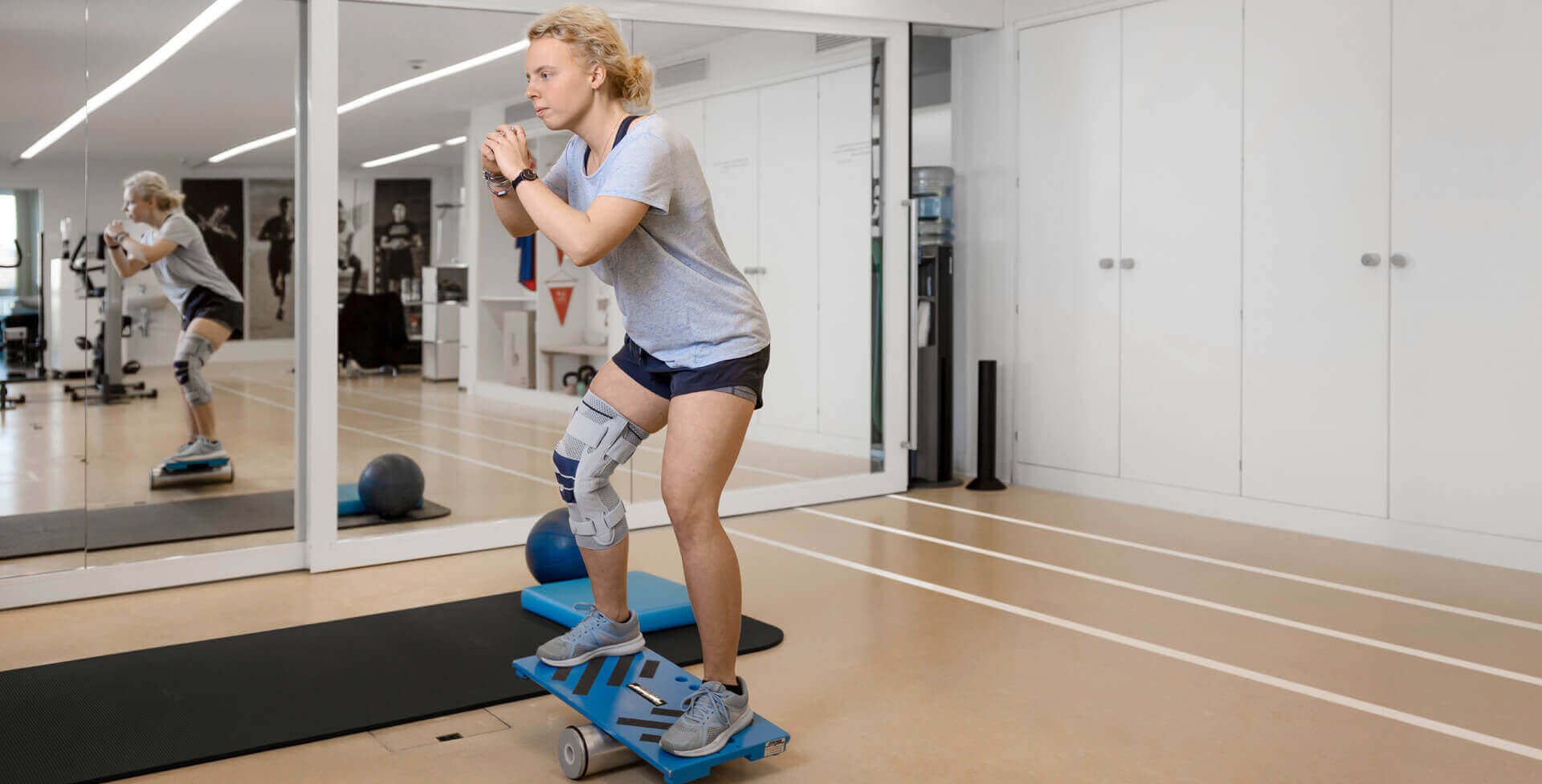 Au début, je faisais de la physiothérapie deux fois par semaine, puis seulement une fois. Après des massages et des exercices d’assouplissement, j’ai heureusement pu très vite commencer par des exercices de raffermissement et de renforcement de la musculature du genou. C’était fatigant, mais je n’ai pas lâché, car je pouvais à peine regarder ma jambe, tant elle était devenue mince et faible. J’ai aussi porté la genouillère GenuTrain S pendant le traitement. Petit à petit, je regagnais en confiance. Au bout de six semaines, l’affaire était réglée.