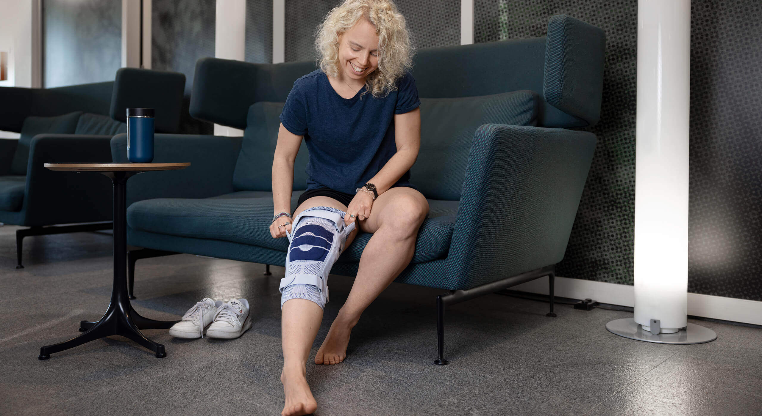 Eh bien, pour ma maman, mon accident avait des airs de déjà-vu. Dans sa jeunesse, elle s’était fait une déchirure complète du ligament croisé, qui l’avait fait souffrir pendant longtemps. Mais après l’IRM, le Dr Sebesta m’a très vite rassurée et a confirmé les suspicions du premier médecin : déchirure des ligaments du genou. Il m’a déconseillé une quelconque opération et suggéré plutôt un traitement conservateur. En plus de la physiothérapie, il m’a prescrit la genouillère GenuTrain S de Bauerfeind.